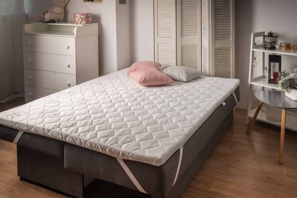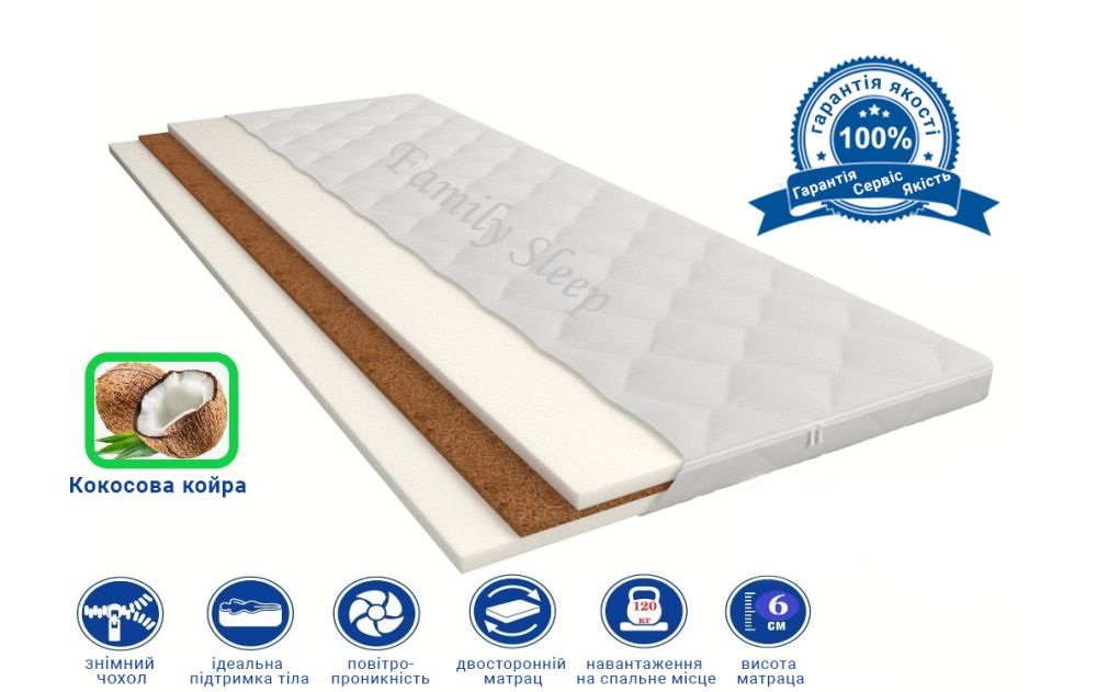 Тонкий матрац-футон для вирівнювання або зміни жорсткості спального місця з кокосовою койрою всередині, має гнучкість, міцність та довговічність.