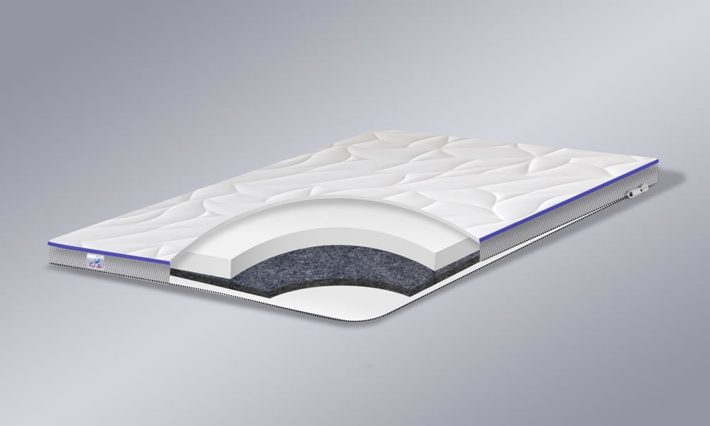 Матрац з асиметричною жорсткістью сторін. Одна сторона футона – блок з ортопедічної піни Air foam – комфортно м”яка, друга з натурального термовойлока, комфортна жорстка. Можна використовувати для додаткового комфорту спального місця, для зміни характеристик основного матраца, на дивані, на підлозі, в наметі на природі, для подорожей, на дачі. Легко скручується, зручний у використанні, добре збегрігає первинну форму.